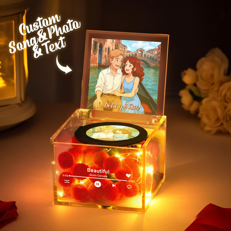 Mini Giradischi In Vinile Anime Personalizzato Con Foto, Musica Automatica, Regalo Personalizzato Per Il Fidanzato, Regali Di Natale
