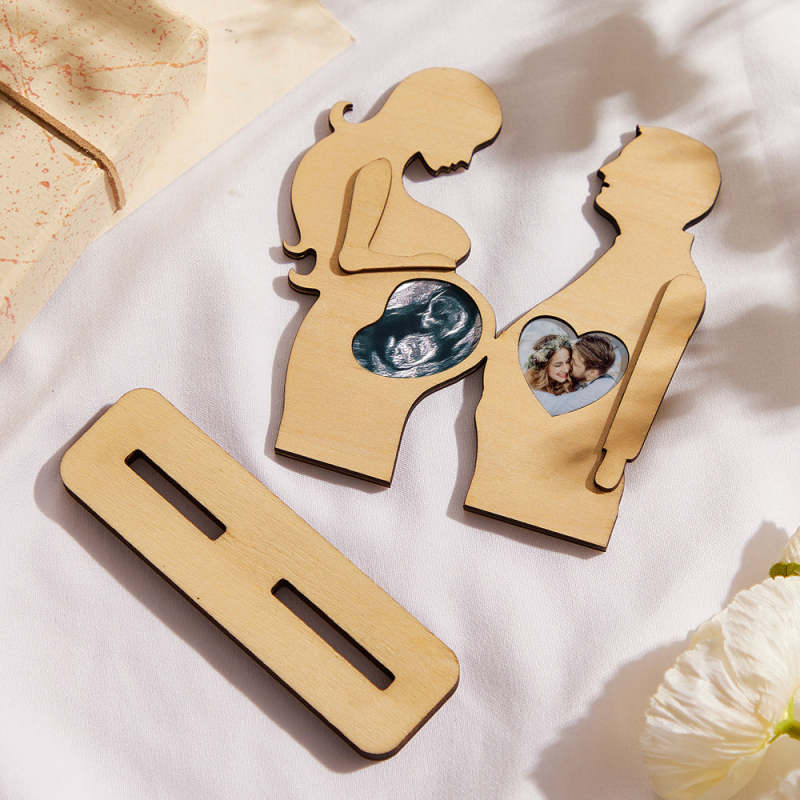 Cornice per ecografia bambino, cornice per donne incinte Cornice tagliata al laser con la sagoma di un uomo e una donna incinta per l'immagine ecografica del bambino. Il regalo perfetto per una donna incinta e la sua famiglia.