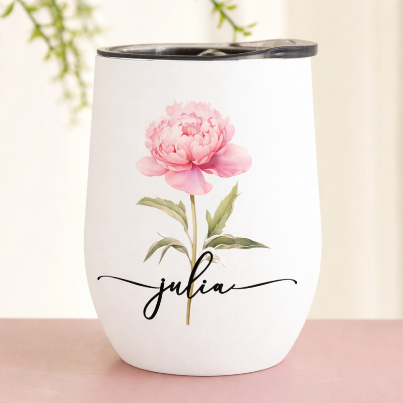 Bicchiere Da Vino Personalizzato Con Il Fiore Di Nascita Per Lei - Regalo Personalizzato Per La Festa Della Mamma Con Nome