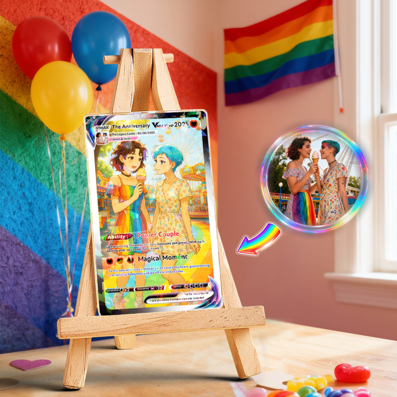 Cartolina Fotografica Personalizzata Lgbt In Stile Fumetto, Da Collezione, Regalo Di Natale Unico Per Coppie E Innamorati.