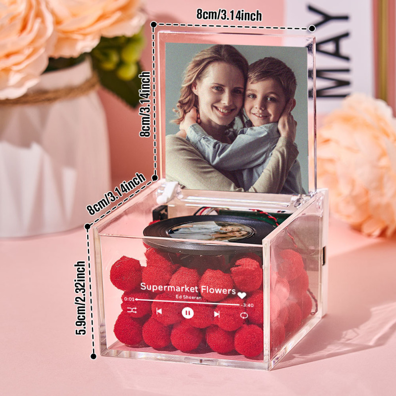 Porta un tocco di nostalgia e personalizzazione nel tuo spazio con questo mini giradischi con foto personalizzata con carillon leggero personalizzato. Progettato per assomigliare a un giradischi vintage, questo carillon è molto più di un semplice pezzo decorativo: è un ricordo sincero che combina i tuoi cari ricordi con melodie rilassanti.