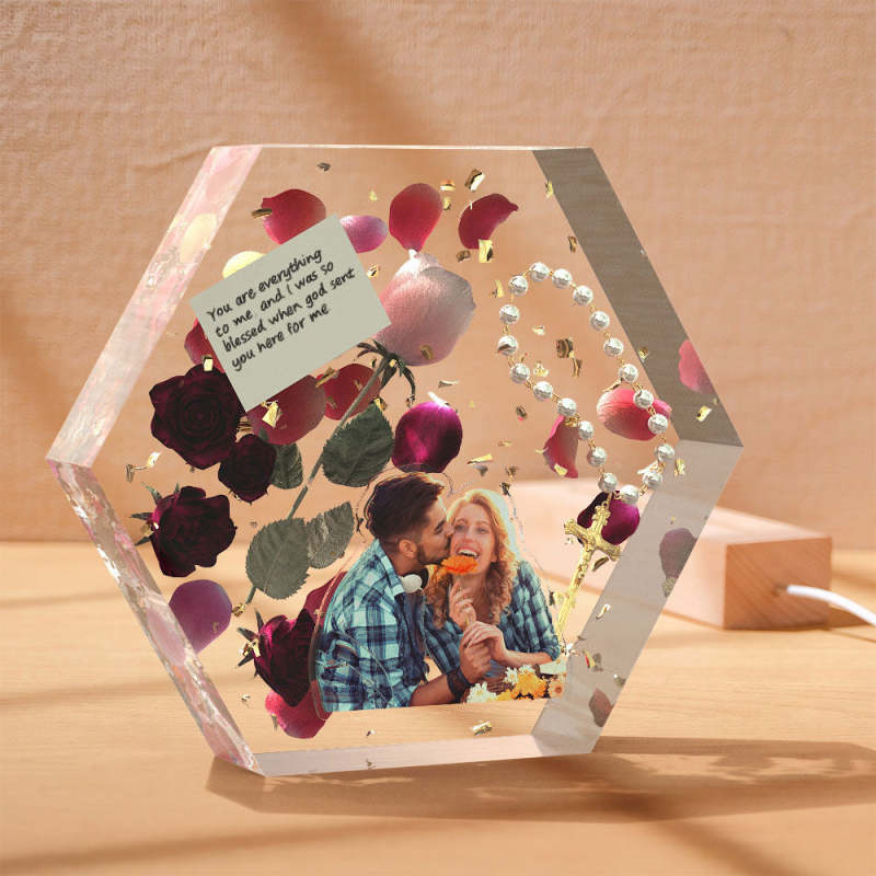 Regali Epossidici Per La Commemorazione Dell'amore Con Luce Notturna Incisa Con Foto Personalizzata