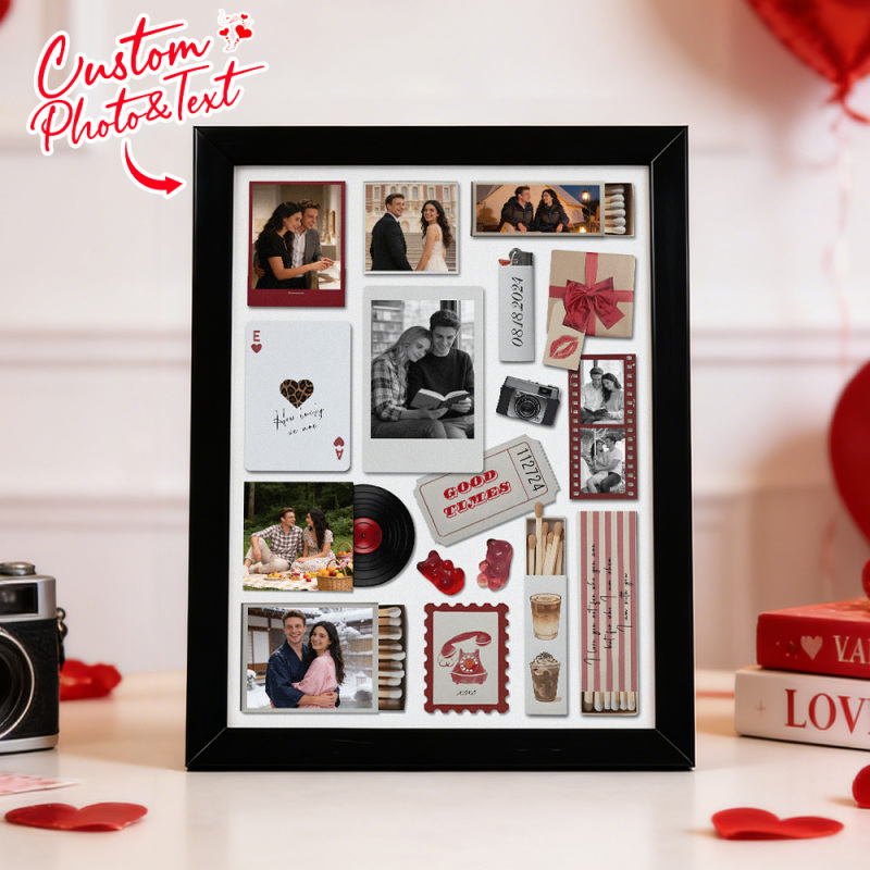 Cornice In Legno Con Foto Personalizzata E Testo, Stampa Poster Con Scatola Di Fiammiferi, Regalo Di Anniversario