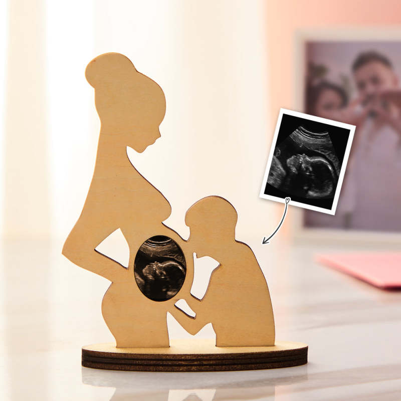 Cornice per ecografia bambino, cornice per donne incinte Cornice tagliata al laser con la sagoma di un uomo e una donna incinta per l'immagine ecografica del bambino. Il regalo perfetto per una donna incinta e la sua famiglia.