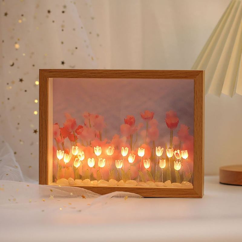 Lámpara nocturna personalizada con marco de fotos en forma de tulipán – Lámpara LED floral DIY, regalo personalizado para el Día de la Madre, decoración para el dormitorio.