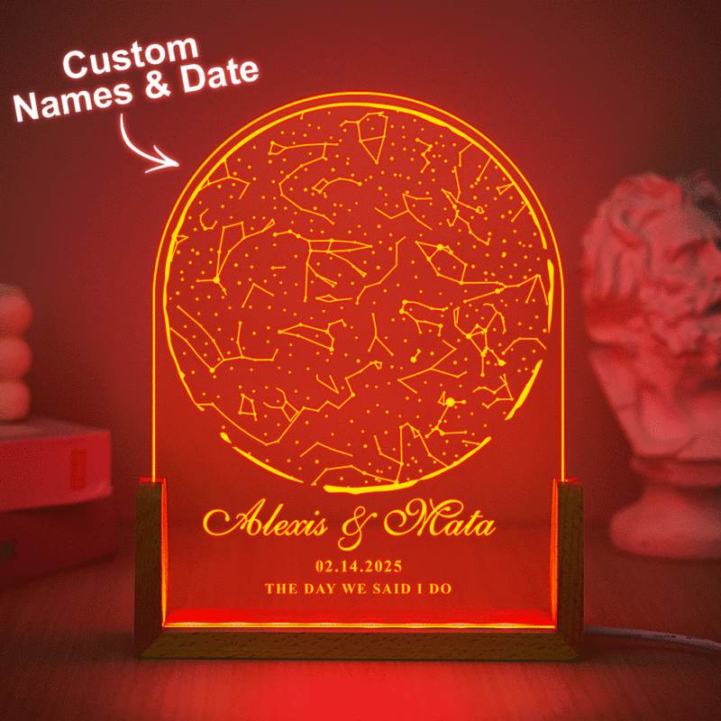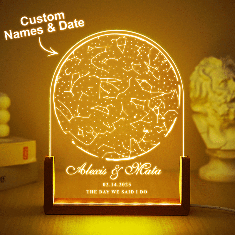 Luce Notturna Personalizzata Con Mappa Stellare Per Data Regalo Di Anniversario Con Luce Notturna Per Matrimonio Personalizzata