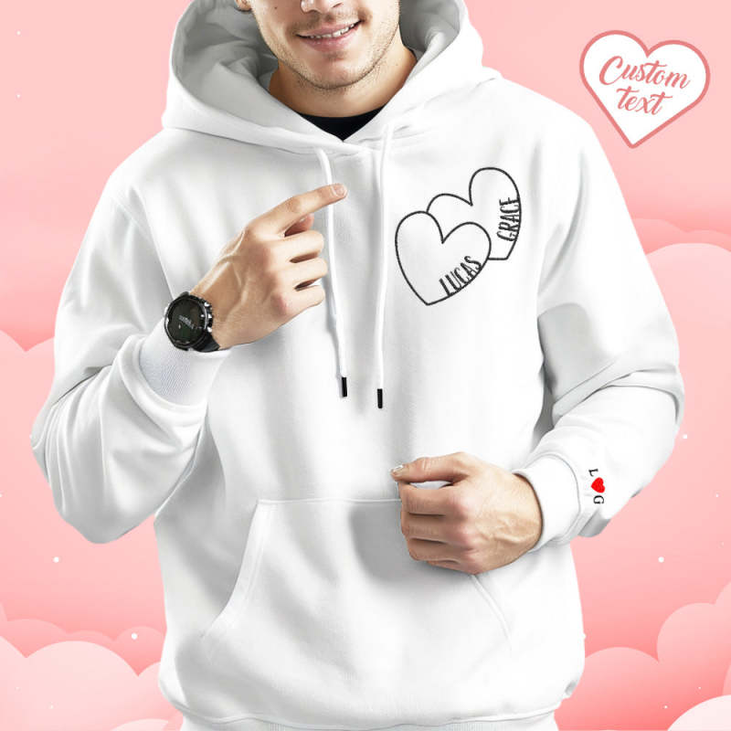 Felpa Con Cappuccio Ricamata Con Testo Personalizzato Felpa Romantica Con Doppi Cuori Regalo Di San Valentino