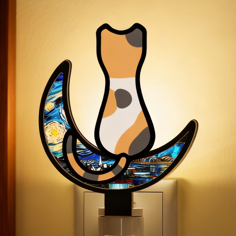 Luce Notturna Personalizzabile A Forma Di Gatto In Acrilico Con Sfondo Stellato E Luna - Lampada Notturna A Led Con Spina Per L'arredamento Della Camera Da Letto