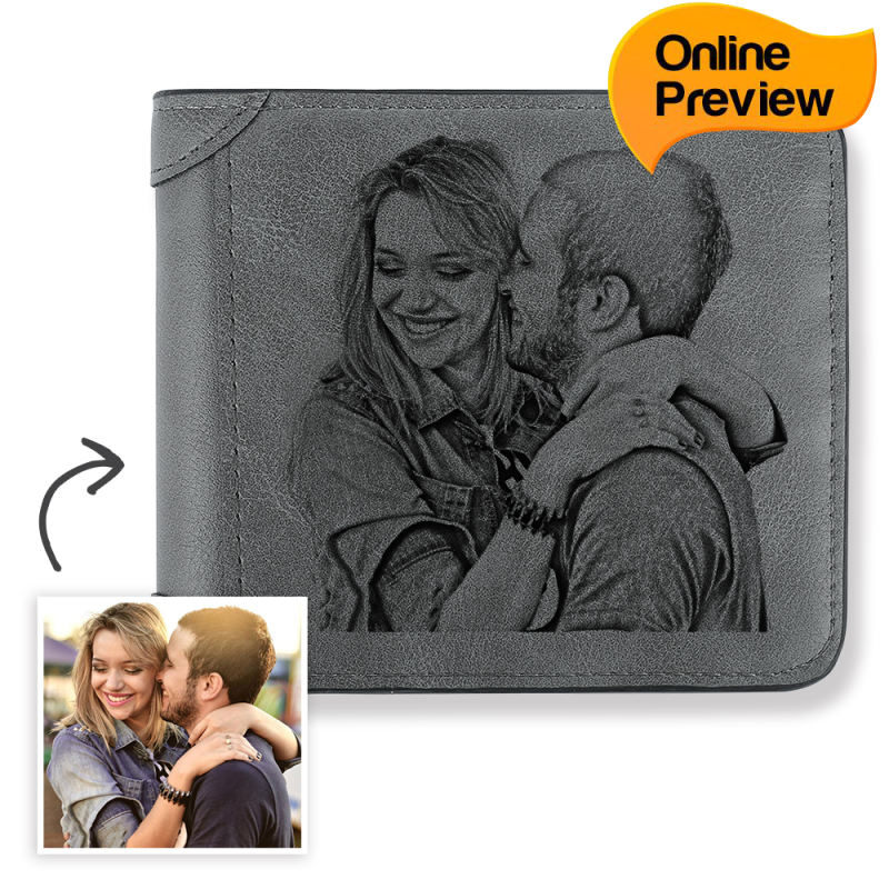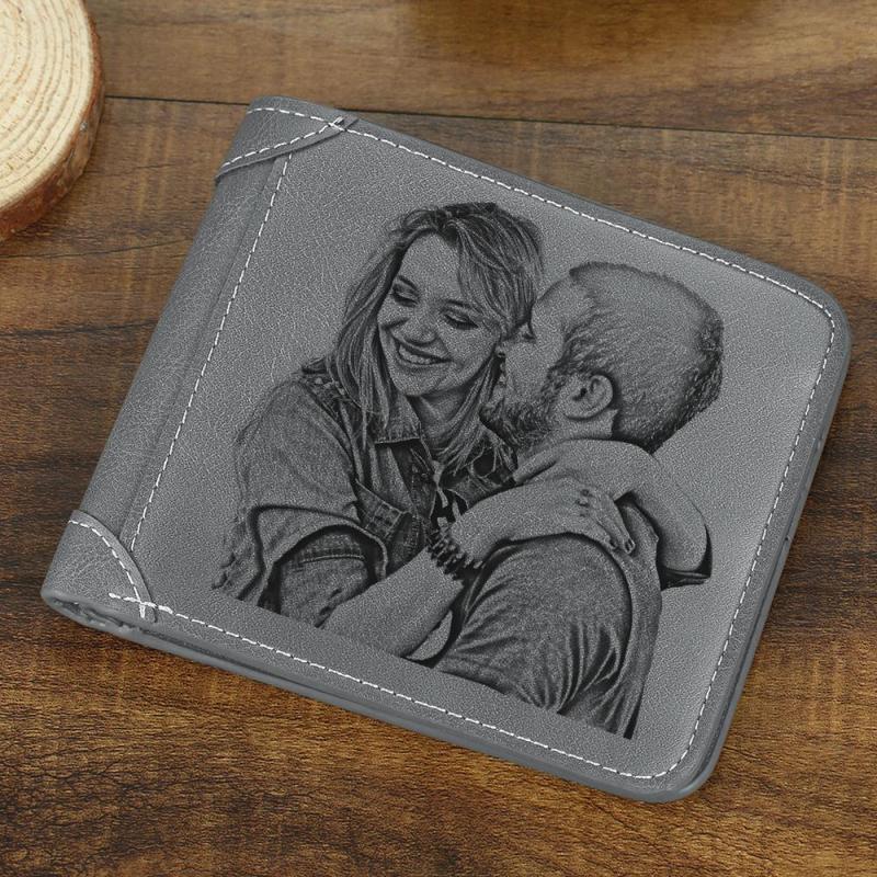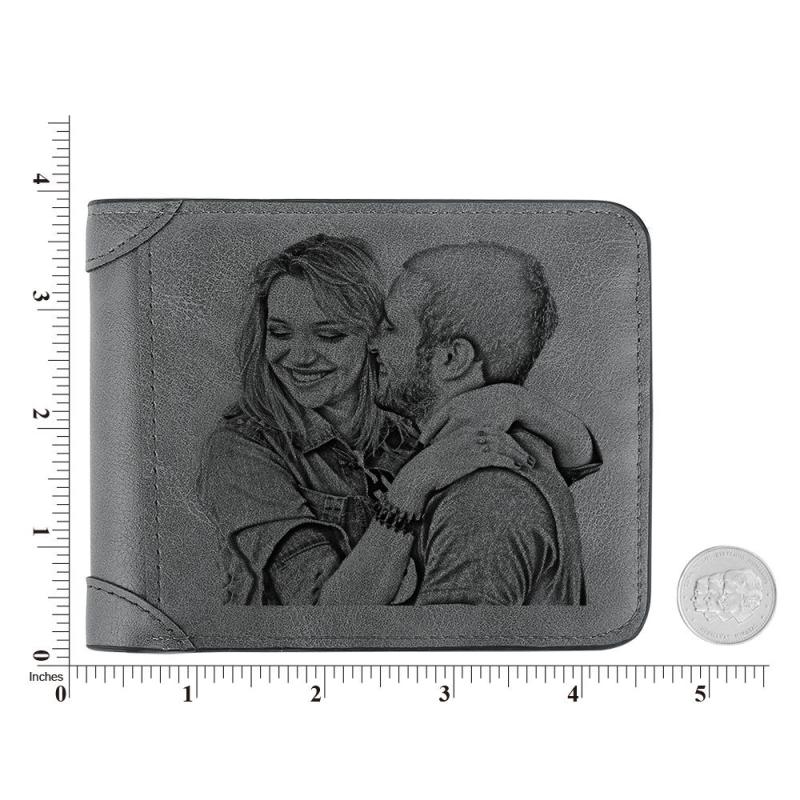 Portafoglio Da Uomo Personalizzato Con Foto Incisa In Pelle Grigia