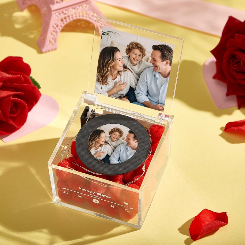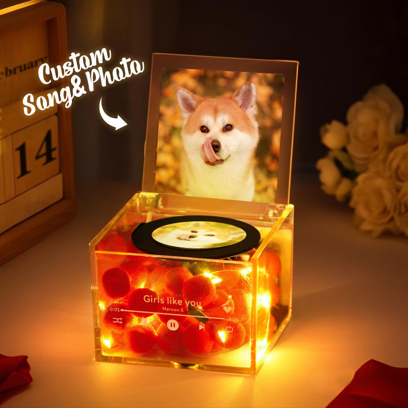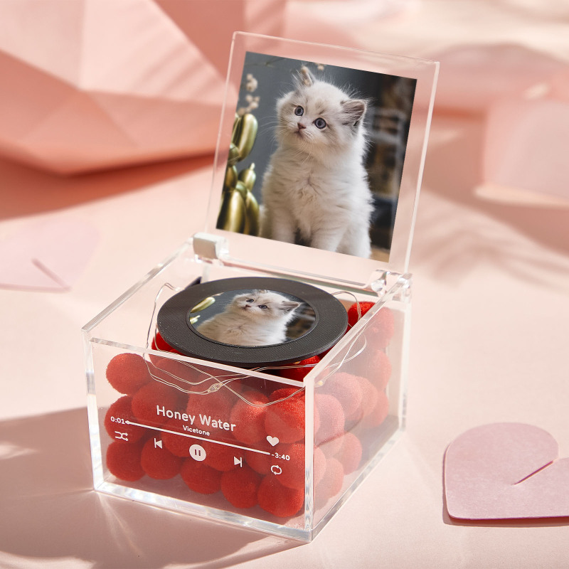 Mini giradischi in vinile con foto personalizzata e luce, regalo musicale personalizzato in scatola acrilica per amanti degli animali