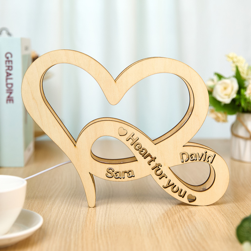 Lampada In Legno Infinity Love Personalizzata, Regalo Per San Valentino
