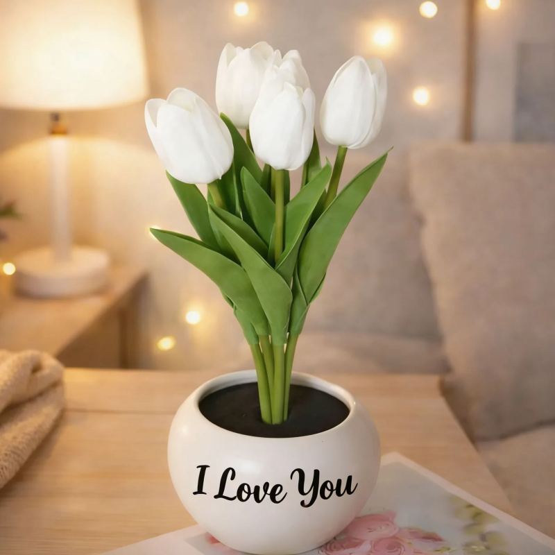Lampada Notturna A Led Personalizzata A Forma Di Tulipano Con 3 Modalità Di Illuminazione, Romantica Lampada A Forma Di Fiore Artificiale, Regalo Unico Per La Festa Della Mamma.