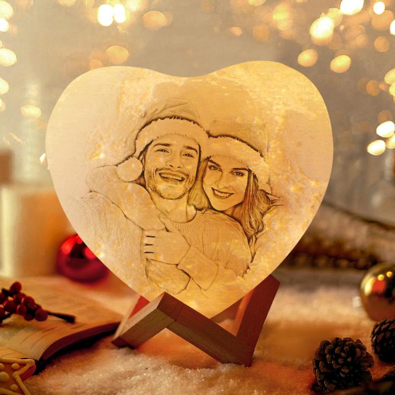 Regalo Di Anniversario Lampada Cuore Foto Stampata In 3D Luce Notturna Personalizzata - Touch 3 Colorei (12-15 Cm)