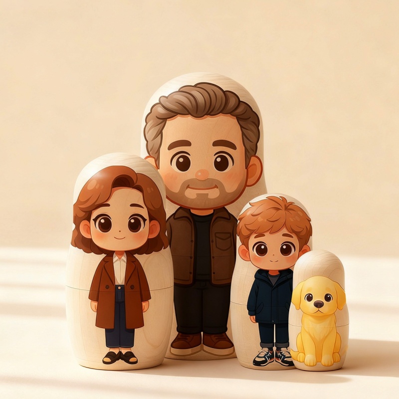 Bring smiles and colors into any space with these Custom Portrait Nesting Dolls, each designed with love and a playful cartoon touch. Instead of being hand-painted, every doll set features custom-illustrated portraits based on your photos - turned into fun, expressive artwork that captures each person’s charm.